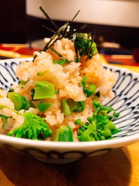 味噌漬けにした明太子と菜の花で混ぜご飯です。