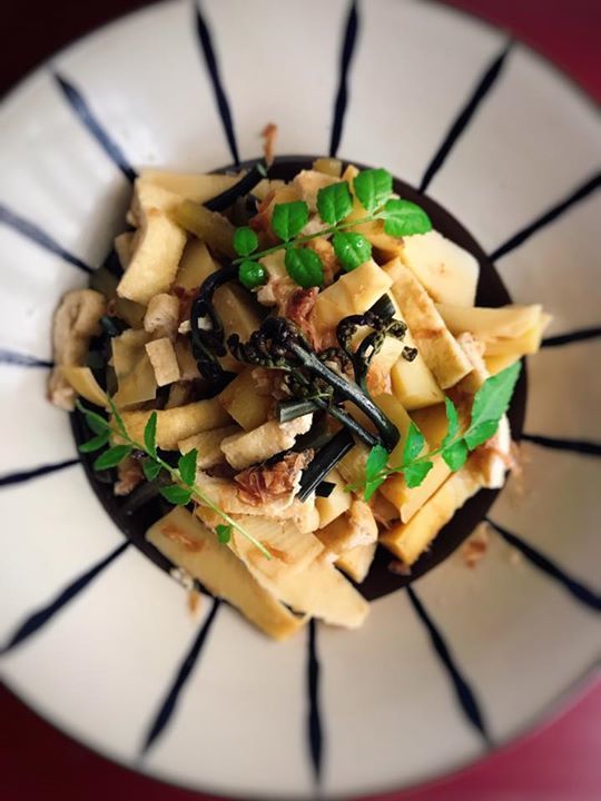 筍、フキ、蕨、お揚げを土佐煮にしました。
