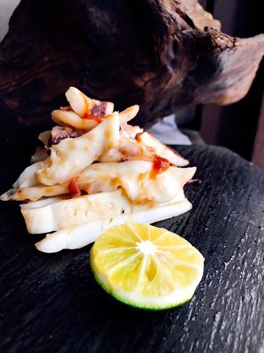 アテはアオリイカの酒盗焼きで…。