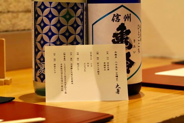 本日のコースの献立が決まりました。キンキンに冷えた低アルコールの夏酒と一緒にどうぞ…。