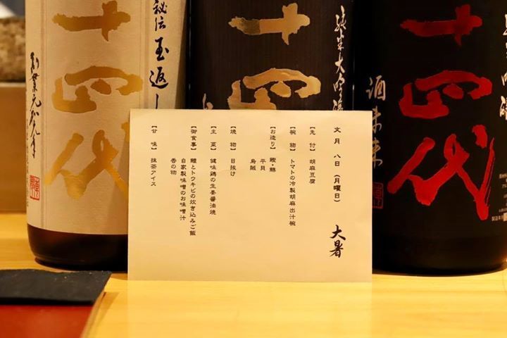 本日のコースの献立が決まりました。十四代と一緒にどうぞ…。