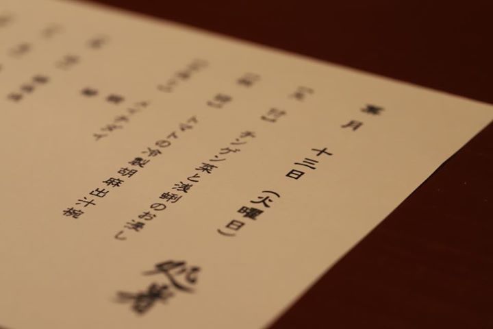 本日のコースの献立が決まりました。