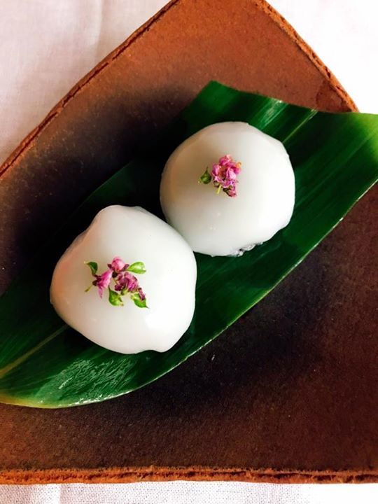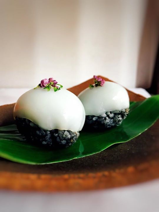 酢飯に酒煎りしたイカ墨、刻んだ下足と耳、切り胡麻をまぜて手毬寿司にしました。