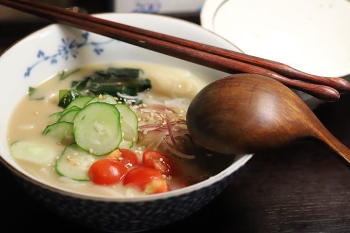 夏の間、お出ししていた素麺です。素麺を冷たいご飯に替えて冷製胡麻出汁茶漬けも良いですね。