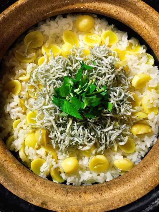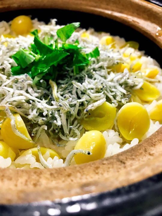 銀杏は一度素揚げし、コクをつけてからジャコと共に土鍋に入れ炊き上げました。