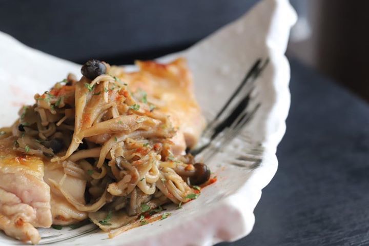 アテは焼き鶏肉の木の子バター醤油焼」で…。