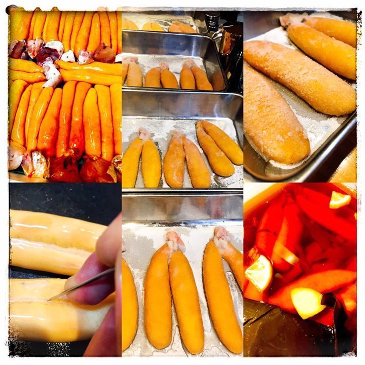 針で穴を開けて血抜きをし、塩を塗して水分と臭みを抜いてから柚庵地に漬け込みます。