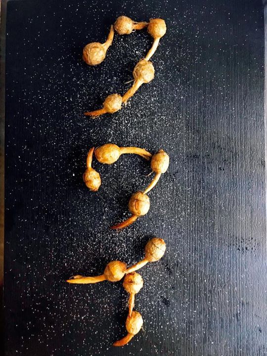 栗の様なホックリ感とほろ苦さを持つクワイを素揚げに。