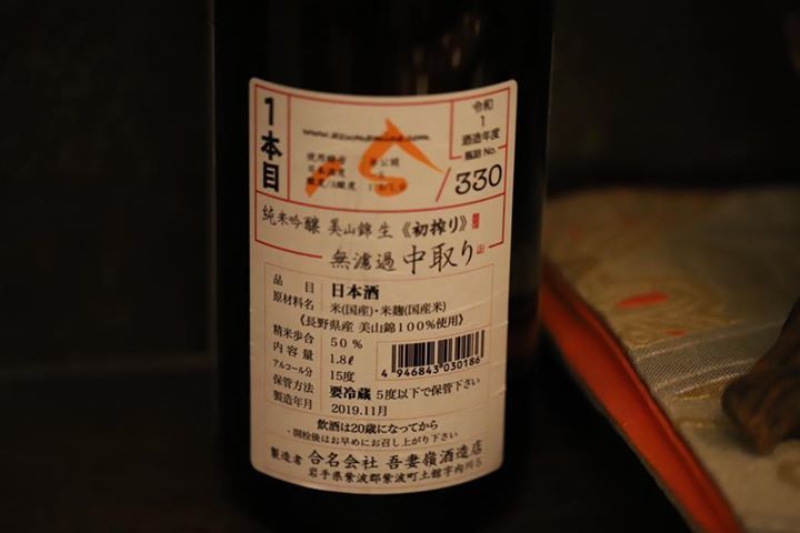 初搾りタンク一本目、330本中の15本目です。あづまみねらしく力強い旨味と香りが広がります。