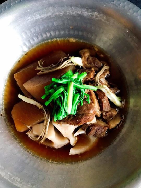 柚子の輪切りを煮汁に入れて、牛すじ、大根、ハスを炊いて味にキレと香りを付けています。