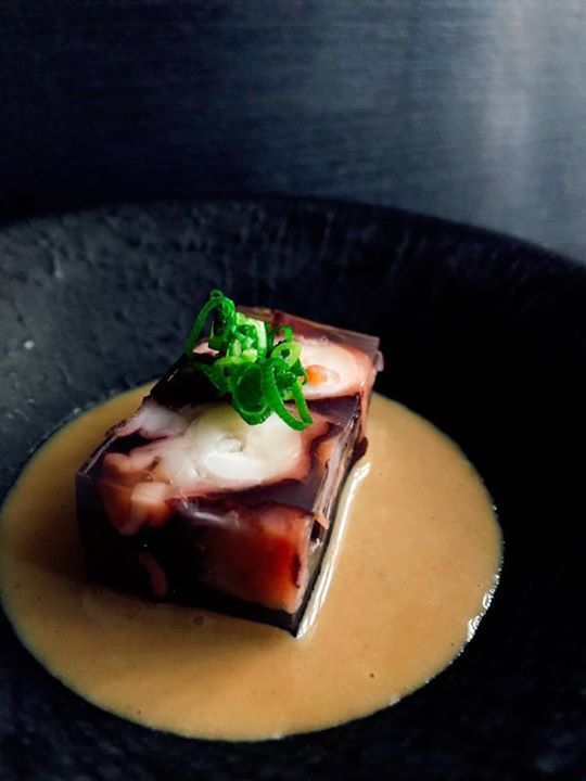 水蛸の剥いでしまう周りの皮と足先を使った前菜です。