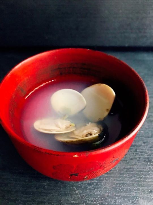 本日は三重県産の小蛤のお吸い物にアクセントに春の息吹フキノトウを少量刻み入れています。