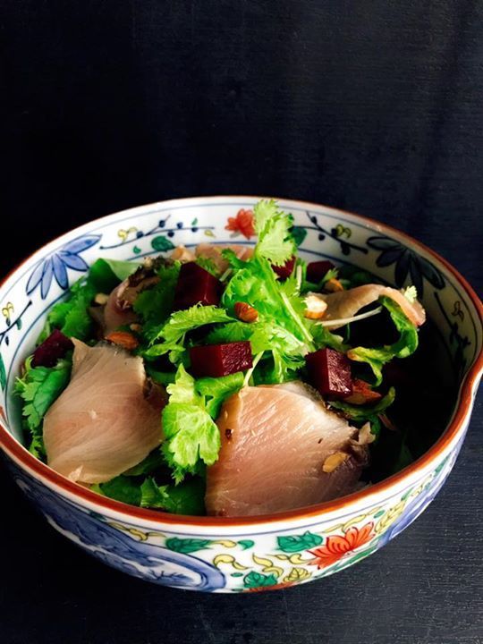 数種類の色々と葉野菜と自家製ブリハムのサラダです。
