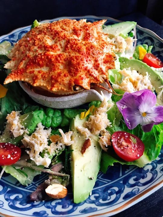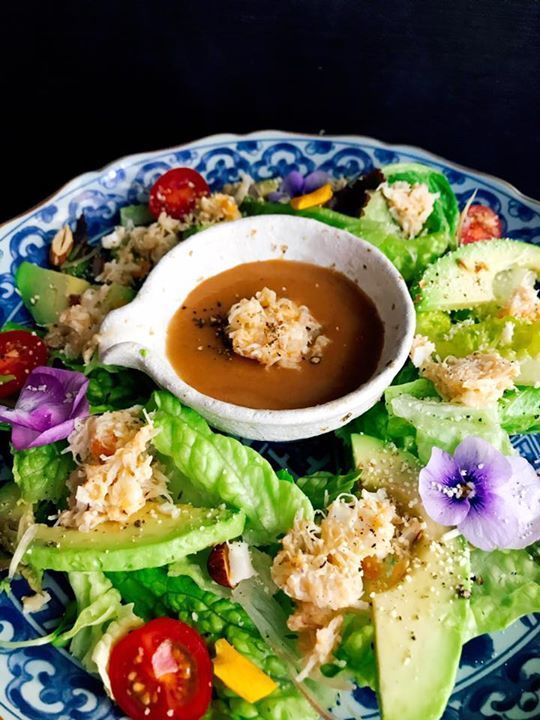 自家製シーザーに蟹味噌を加えたドレッシングで頂くサラダです。