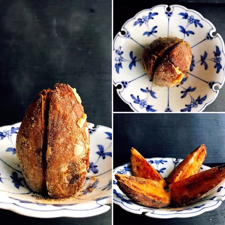 濃口八方で含め煮にした安納芋を揚げた一品です。