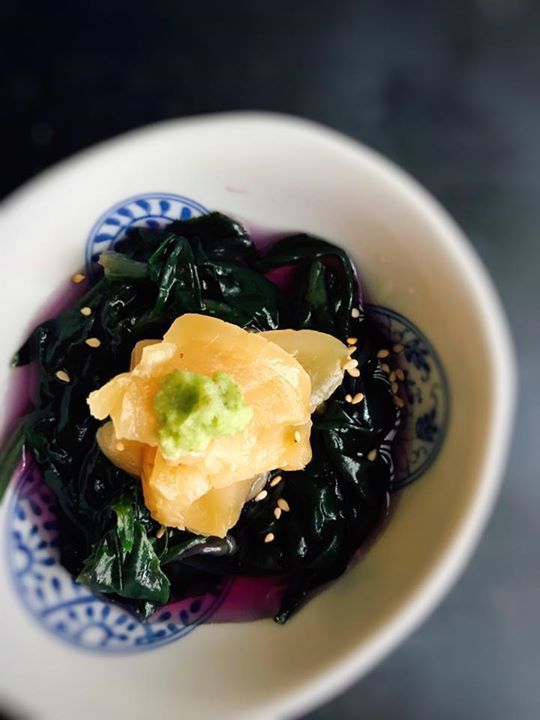 『平貝の味噌漬けと金時草の酢の物』