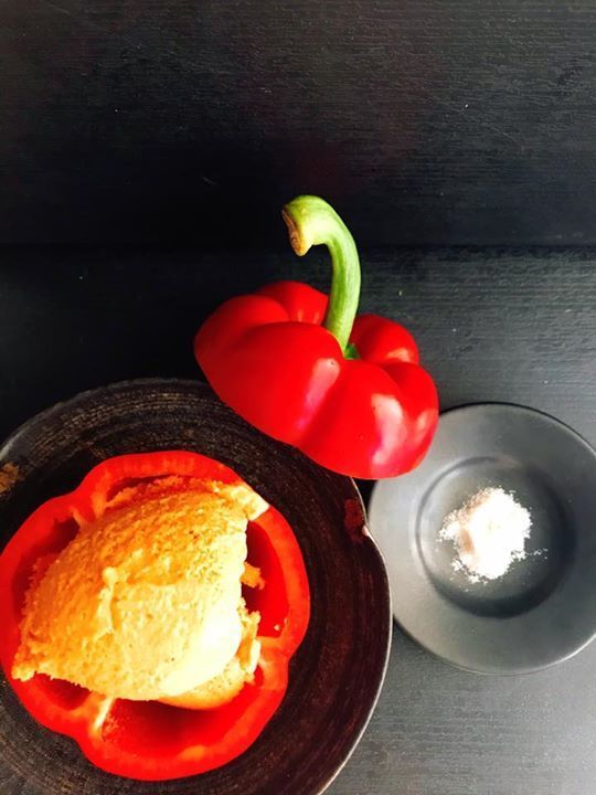 まずはそのままパプリカの香りと甘味を楽しみ、燻製塩を掛けてスモーキーなパプリカを楽しむ二度美味しいアイスです😋