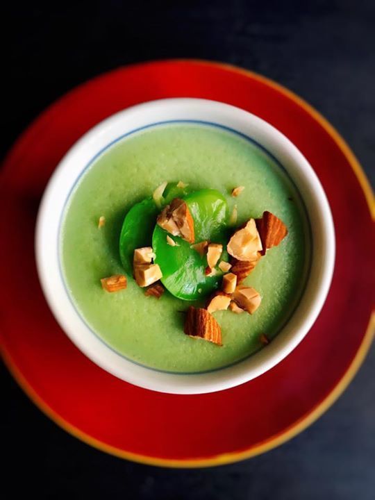 裏漉した天豆、卵、サヤから取った出汁で茶碗蒸しに。