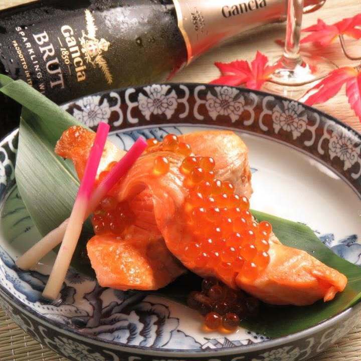 毎年お出ししていた、メニューですが、コレだけの量のイクラをかけるとなるとおいくらになってしまうのか…。卵を持ってまも無い鮭の超薄皮のイクラを紅葉漬けにしました。口に入れるとフッと無くなります😋イクラの価格が下がったらまた復活ですね😥